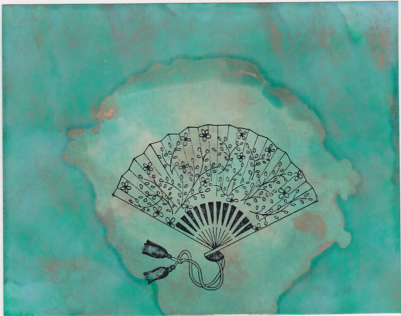 Later, Tim Holtz and Ranger developed smaller bottles of alcohol ink and the applicator. I like the handle Tim put on his applicator, and the inks are much less expensive. But what ever happened to the “window effect?” Is anyone doing it any more? Some of my friends from the Oriental Stamp Art forum hadn’t heard of it, so I decided to write about it and let people see how pretty it is.