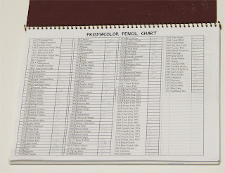 I started keeping a Prisma color Journal last year. In it are the color charts and notes from my tutorial as well as other notes and articles. I've been looking at the journals kept by Copic lovers and have gotten some great ideas for those of us who love Prismas. I want to add some of those ideas to my journal to make it an even better tool. What's in my journal right now: