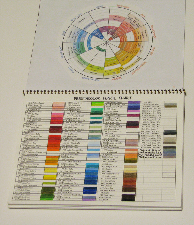 - I also developed a color chart by color families and colored in with actual pencils. This one I use while coloring as it allows me to see what the colors actually look like so that I can select just the right colors, highlights and shading. Link to both charts
